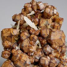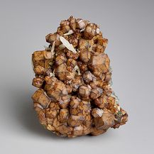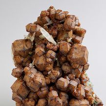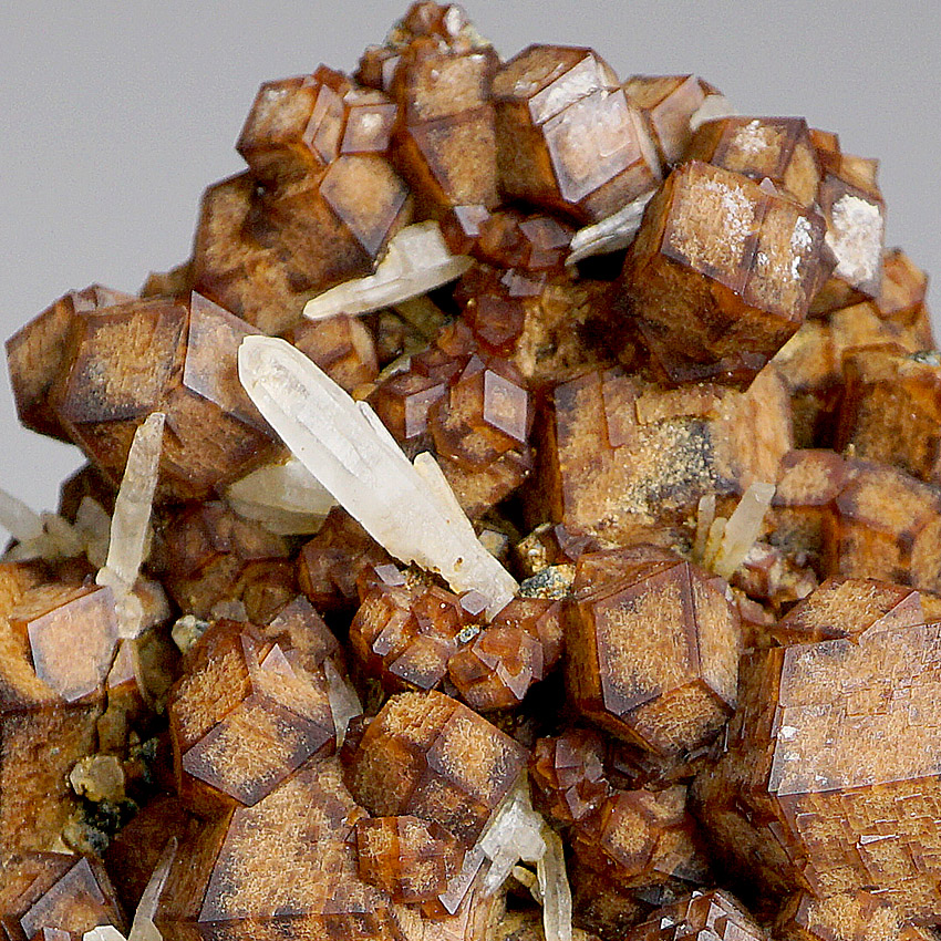 Numerous reddish-brown, sharp edged and idealtypic andradite crystals up to 1.6 cm in size - freestanding on radial greenish hedenbergite crystals. A few white acicular quartz crystals up to 1.5 cm in size complete the awesome appearance of this piece from Serifos, Aegean Islands, Greece. This is an really unique andradite specimen for collectors. Your will not find too much pieces in such quality from the locality. Habit, coloration, luster, size and appearance are all extraordinary!