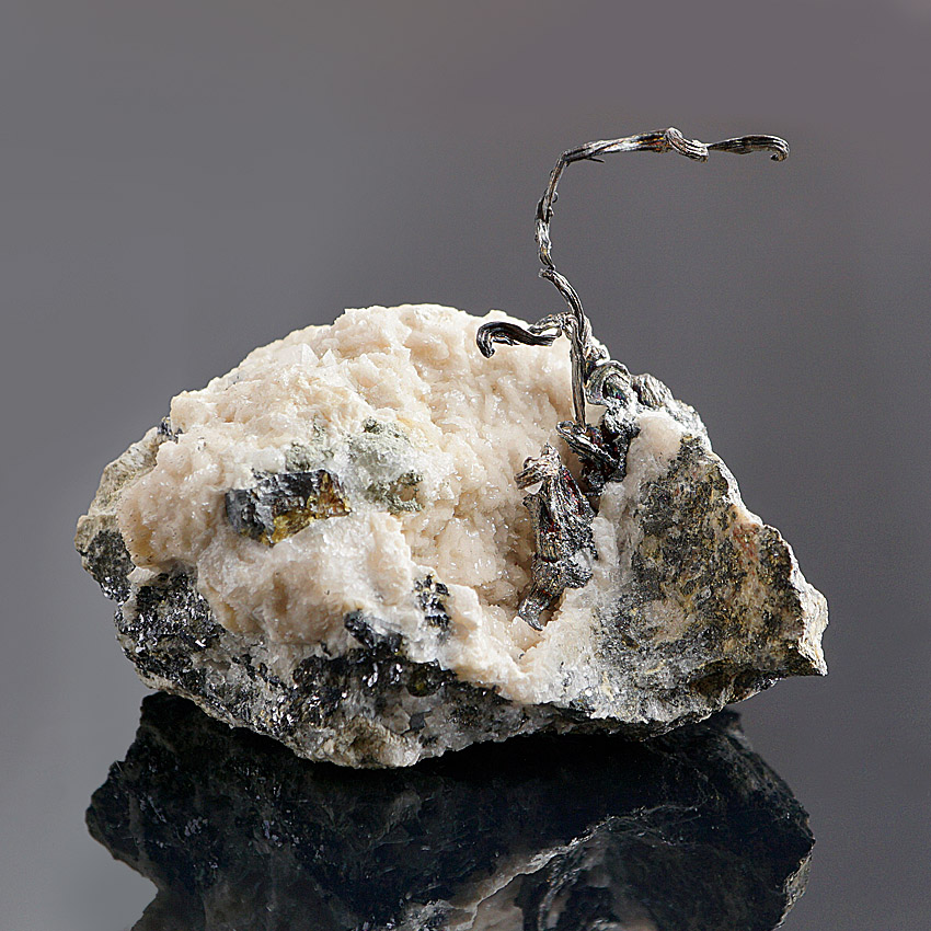 Native Silver On Dolomite & Sphalerite